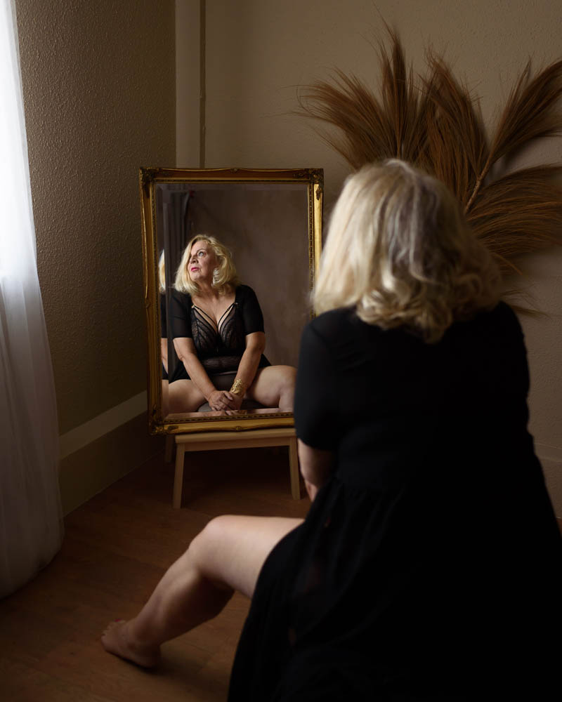 De meeste vrouwen die bij mij komen, doen dit niet zomaar om een paar mooie foto’s te hebben. Ze doen een boudoirshoot omdat ze weer willen voelen wie ze echt zijn, los van alle rollen (moeder, partner, dochter, vriendin etc.) die ze elke dag vervullen.